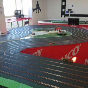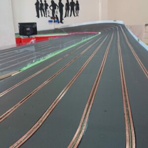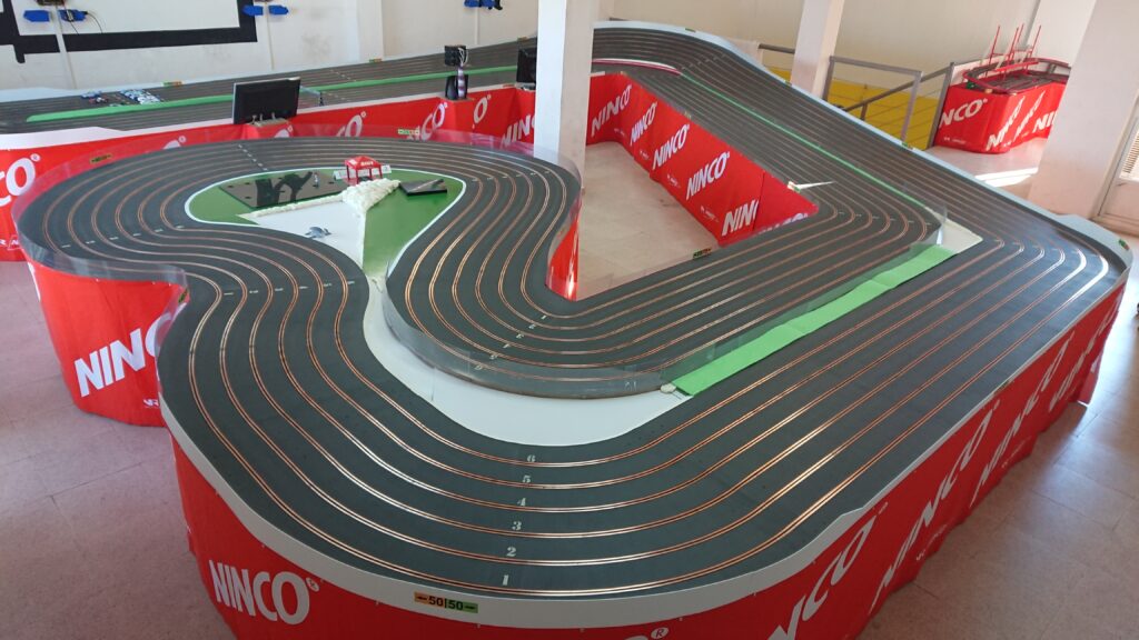 Disponemos de una pista artesanal de madera de 6 carriles y aproximadamente 40 metros de cuerda equipada con electrónica DS, en la cual entrenamos y disputamos nuestros campeonatos